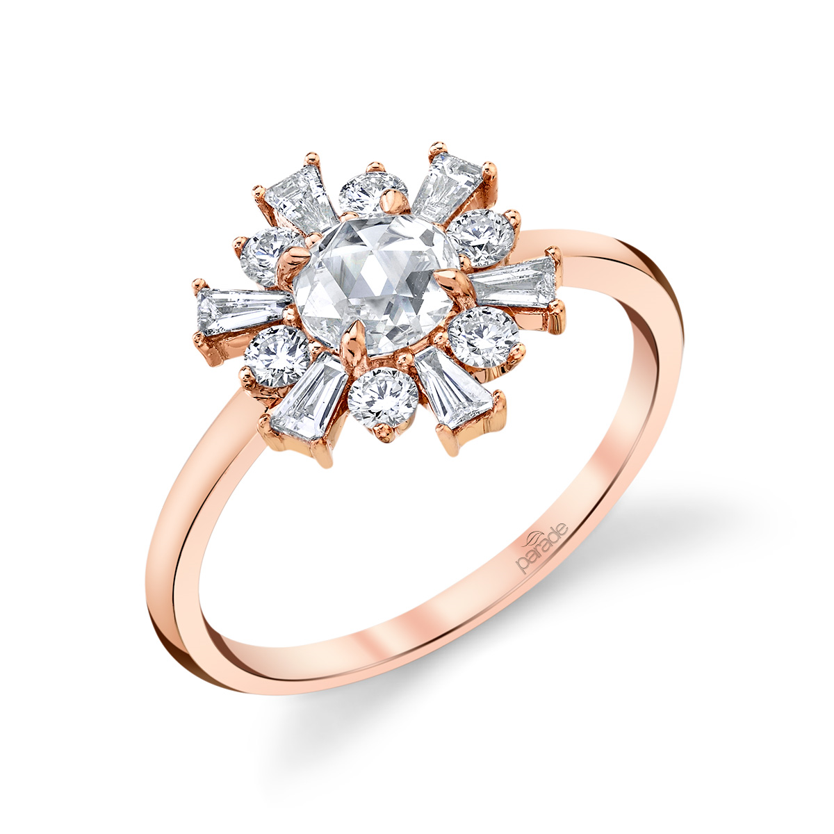 Radiate elegance with our 14K Rose Gold Starburst Halo Round Diamond Ring, featuring 0.50CTW of diamonds, perfect for adding a touch of sparkle to your ensemble.