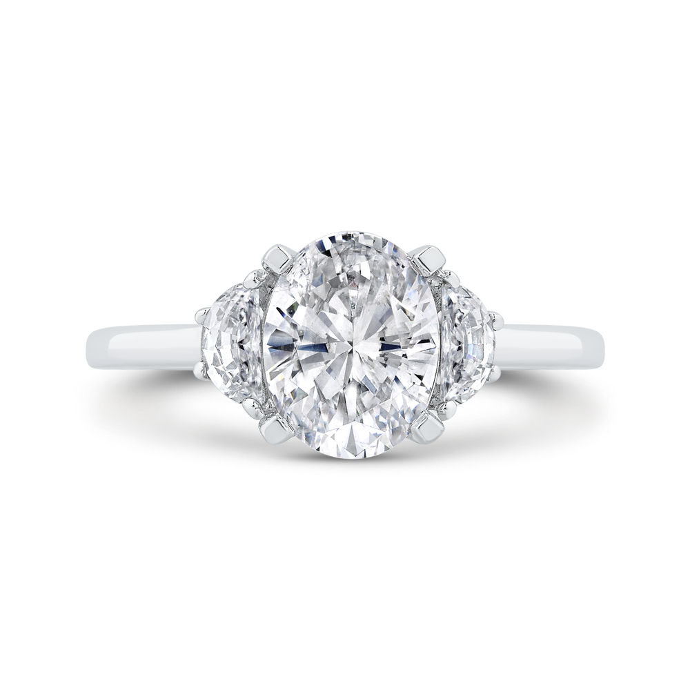 14K White Gold 3 Stone Oval Diamond Semi-Mount Ring .60CTW.