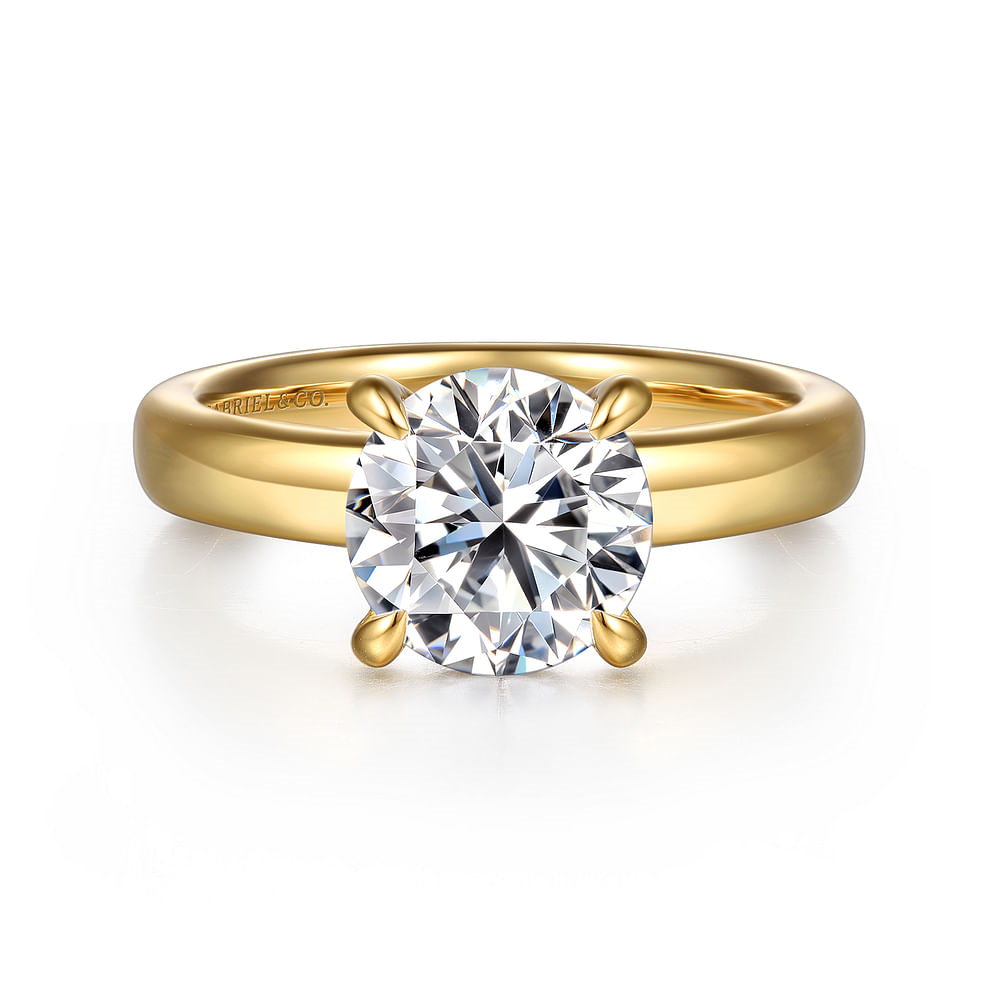 14K Yellow Gold Solitaire Straight Round Diamond Semi-Mount Ring