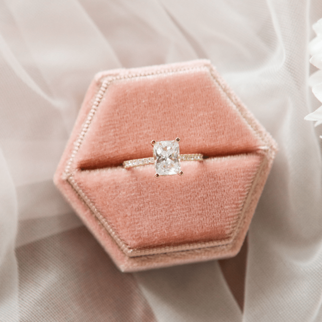14K Yellow Gold Hidden Halo Radiant Diamond Semi-Mount Ring 0.24CTW.