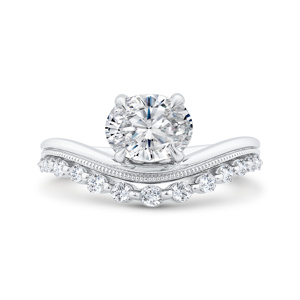 14K White Gold Straight Accented Oval Diamond Semi-Mount Ring .63CTW.