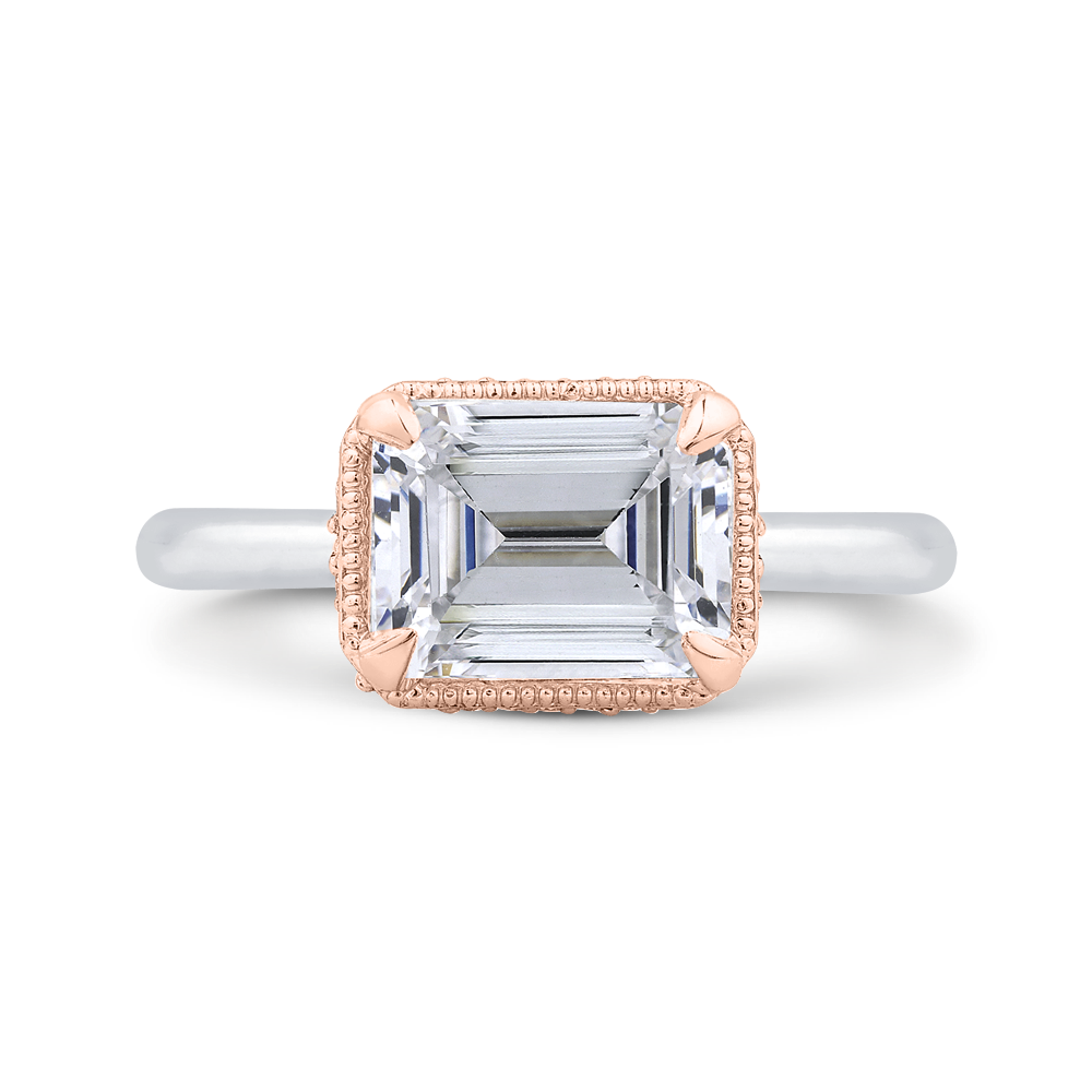 14K White Gold Straight Solitaire Emerald Diamond Semi-Mount Ring .10CTW.