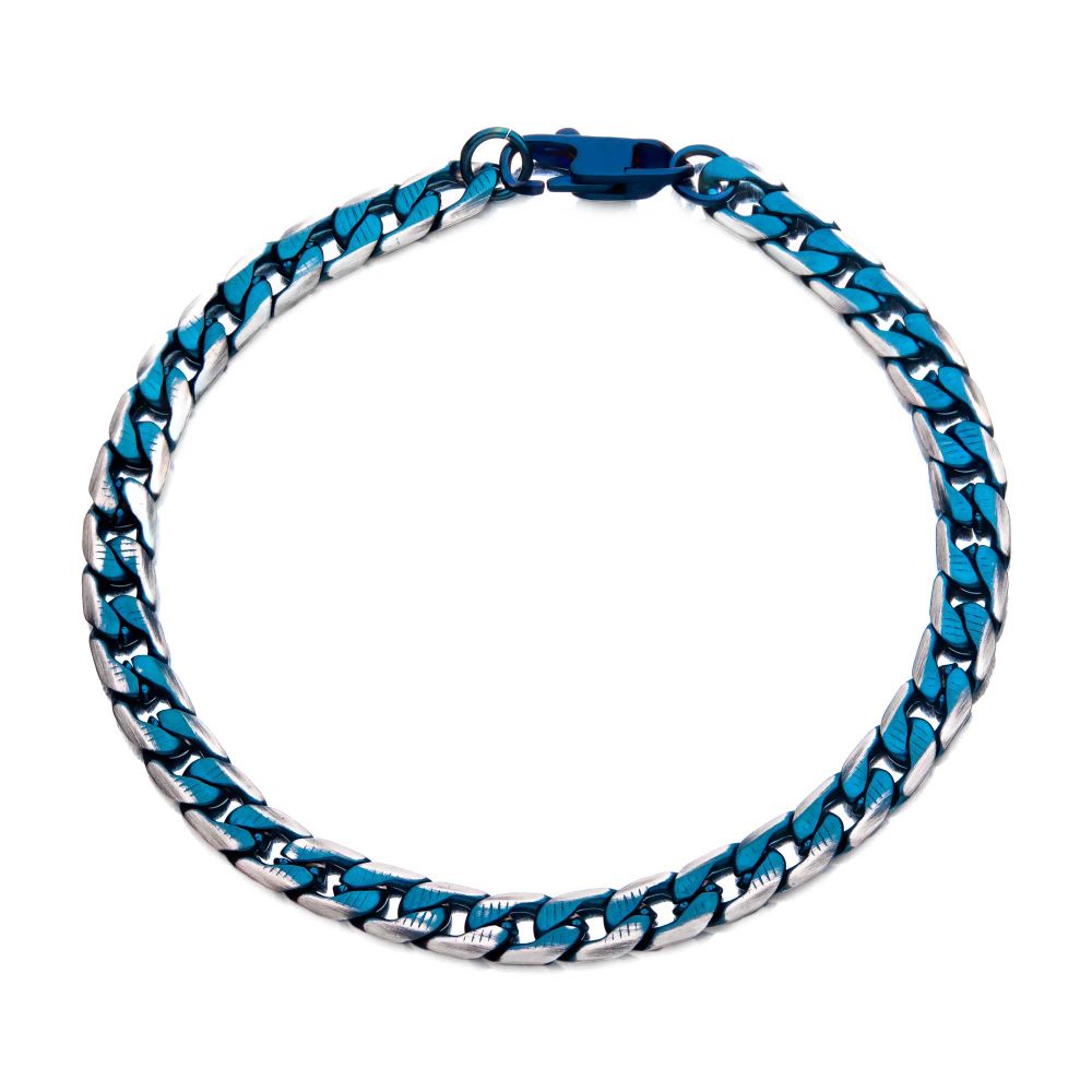 Men's Denim Fade Stainless Steel, Blue IP Curb 6mm Chain with Lobster Clasp Bracelet 8.5" long.