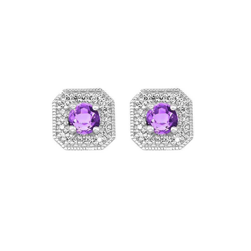 10Kt White Gold Diamond 1/10Ctw & Amethyst 1/2Ctw Earring