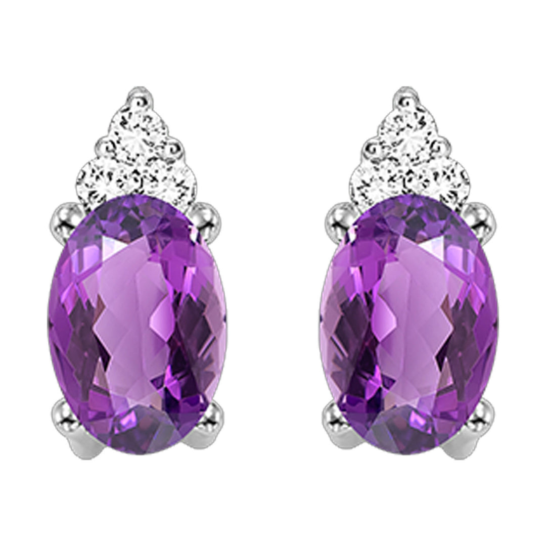 10Kt White Gold Diamond 1/20Ctw & Amethyst 3/8Ctw Earring