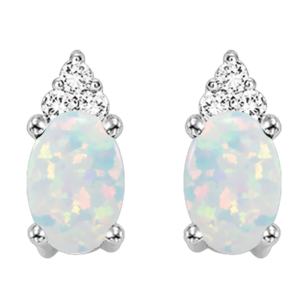 10Kt White Gold Diamond 1/20Ctw & Opal 5/8Ctw Earring