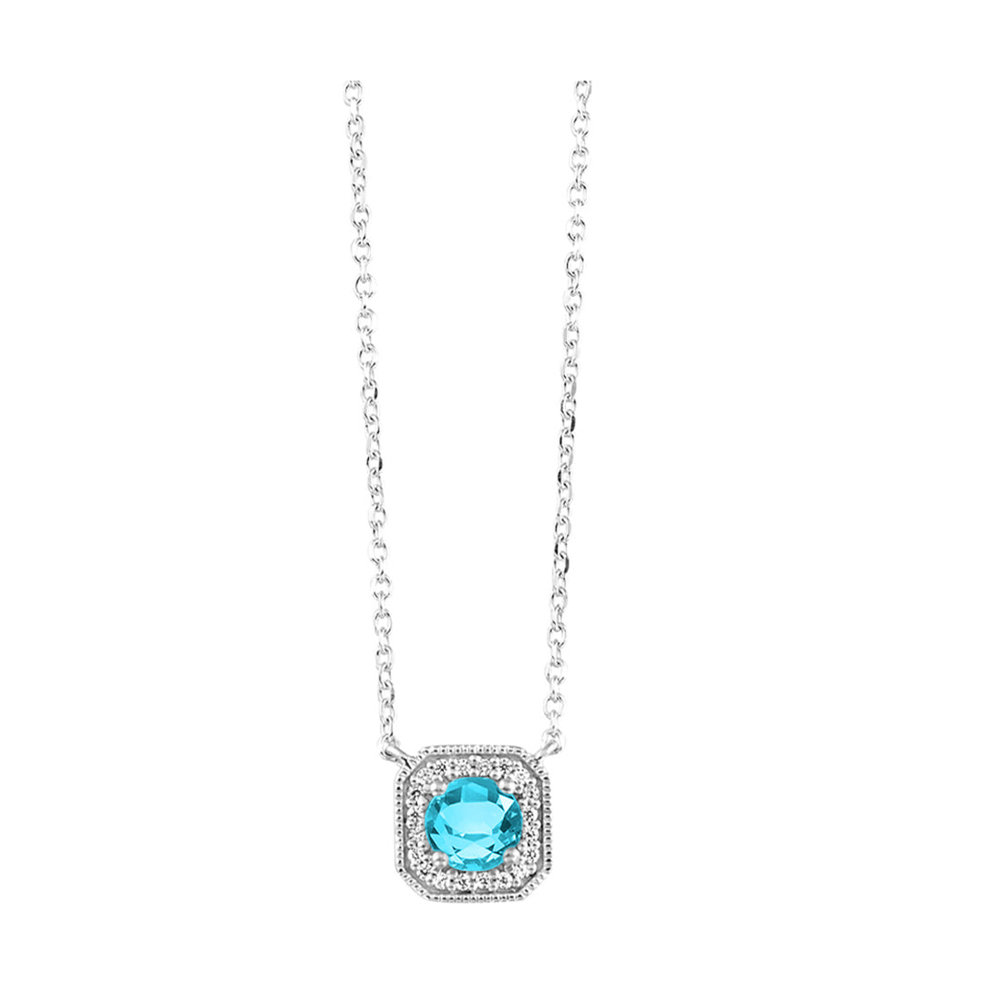 10Kt White Gold Diamond 1/20Ctw & Aquamarine 3/8Ctw Pendant