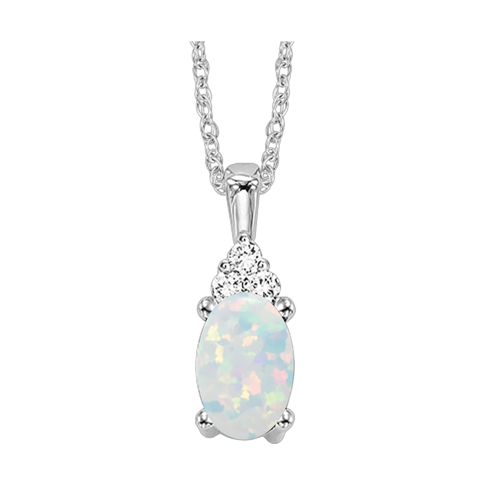 10Kt White Gold Diamond 1/50Ctw & Opal 5/8ctw Pendant