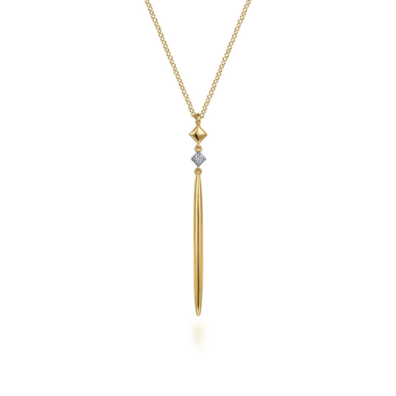14K Yellow Gold Diamond Pendant Drop Necklace