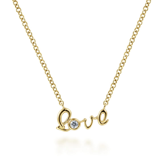 14K Yellow Gold Diamond Love Pendant Necklace