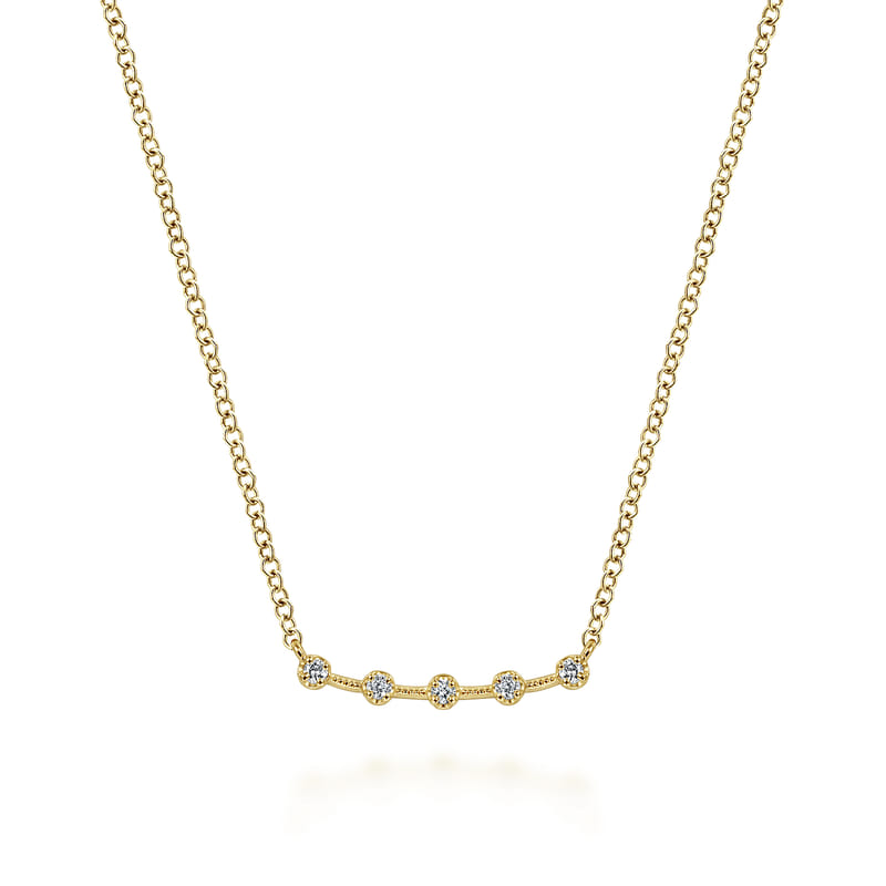 14K Yellow Gold Diamond Stations Curved Bar Necklace