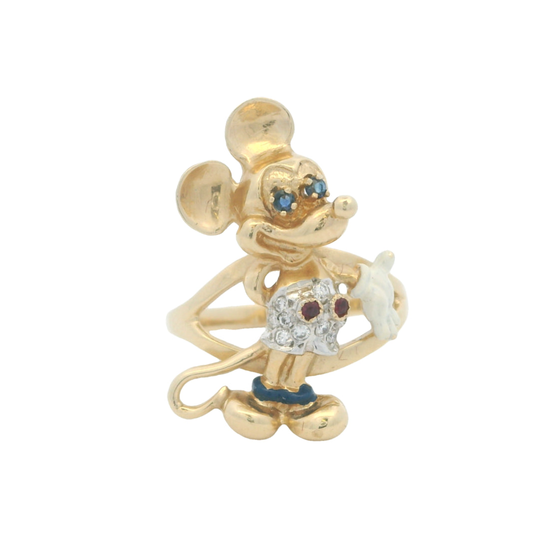 14K Yellow Gold Estimated 0.135 CTW Natural Diamond Mickey Mouse Ring