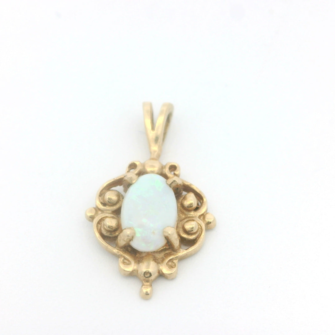 14K Yellow Gold Natural Opal Solitaire Pendant Necklace