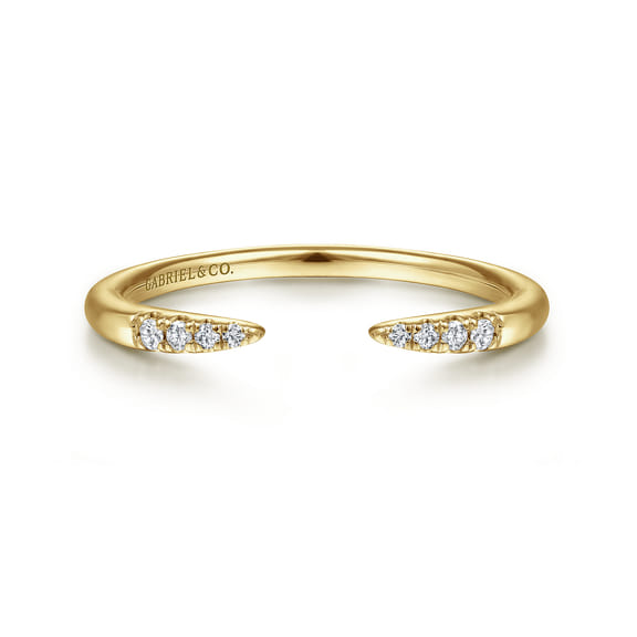 14K Yellow Gold Open Diamond Tipped Stackable Ring