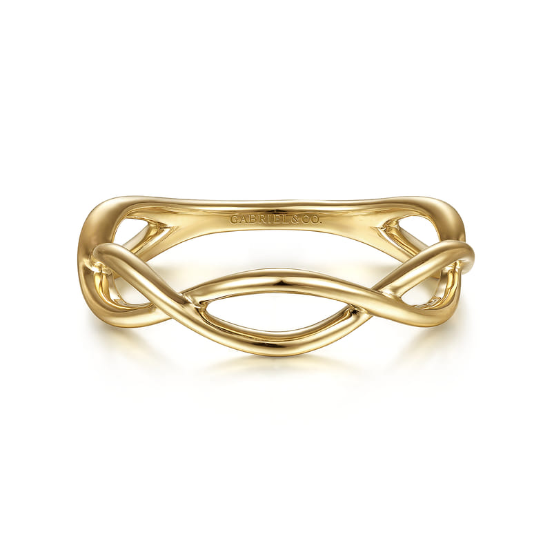 14K Yellow Gold Plain Twisted Stackable Ring