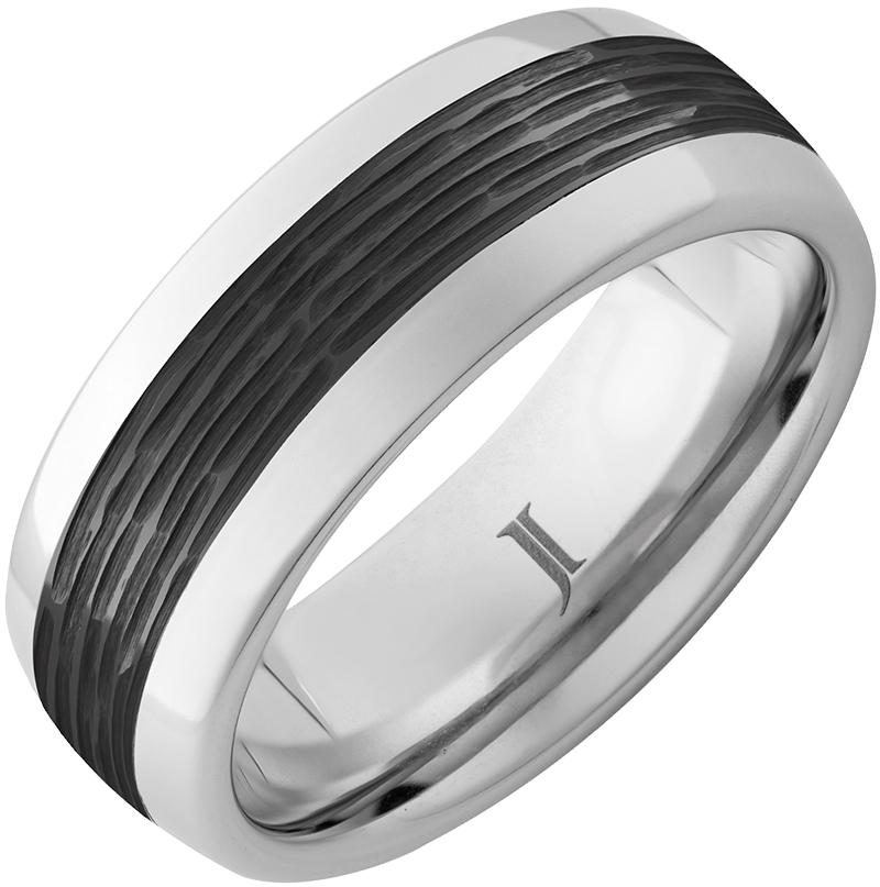 Silver Serinium Black Inlay Comfort Fit 8mm Wedding Band