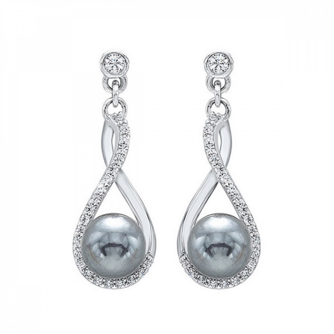 Sterling Silver Fresh Water Dark Pearl Dangle Earrings