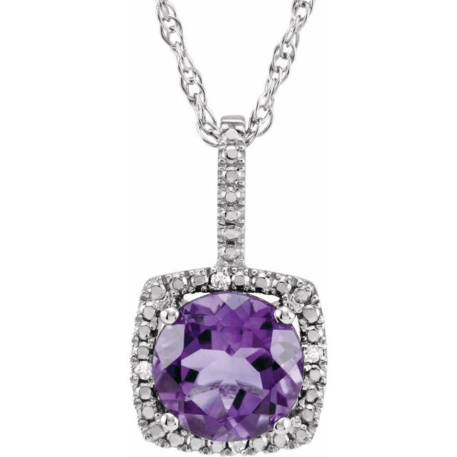 Sterling Silver Natural Amethyst Halo Pendant Necklace