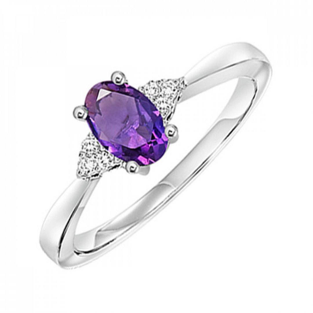 10K White Gold Natural Amethyst Accented Pendant Necklace