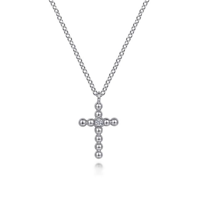 Sterling Silver Natural Diamond Cross Pendant Necklace