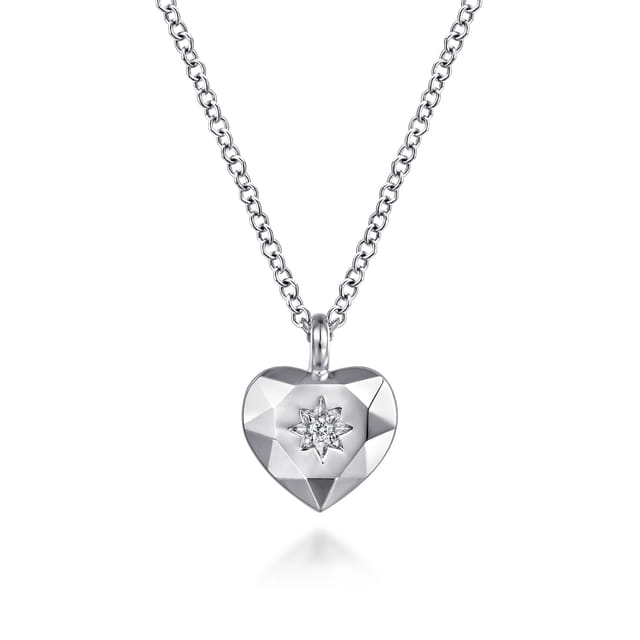 Sterling Silver Diamond Cut Heart Pendant Necklace