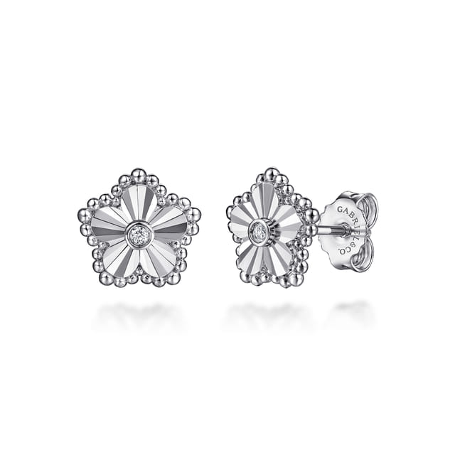 Sterling Silver Heart Diamond Cut Stud Earrings