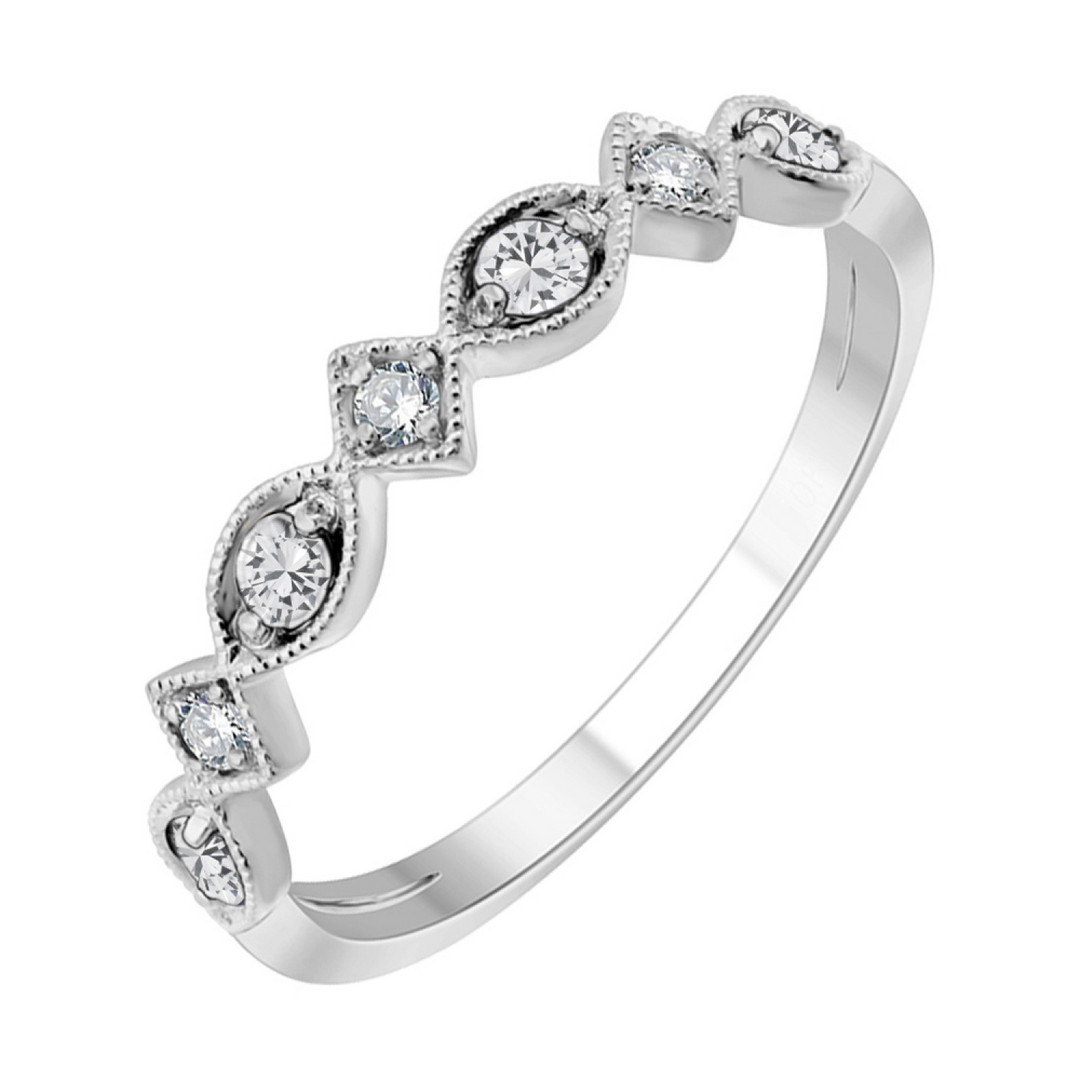 14K White Gold 0.25CTW Natural Diamond Stackable Ring